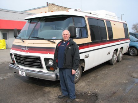 And so we turned away from the lake and headed to the freeway in bright sunshine. Either side of the road the trees were tall and ghostly and the landscape flat and browned off by the winter. I cautiously pushed the GMC up to seventy and it seemed happy enough – if a bit louder – so I clicked on the cruise control and there we cruised, along an almost empty freeway watching the landscape flashing by but hardly changing. It was like a continuous loop of brown grass, skeletal trees and grubby icebergs of marooned snow. It was nice to talk and not worry about the road too much, though I could hardly take my eyes off all the gauges, half expecting one of them to either rise dramatically or dip, heralding some awful metallic grinding noise and the slow death of something important. But it didn’t happen. The old bus just cruised along.