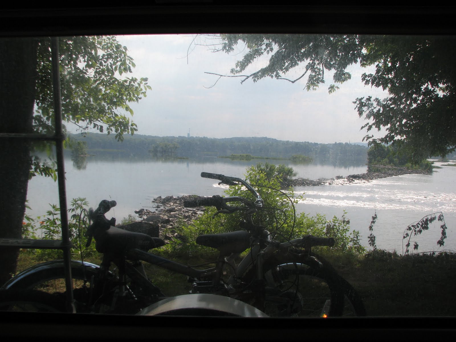 We sat and waited under the trees with crickets beginning to sing around us. We opened the big white door at the ferry l anding so the ferry captain could see through his binoculars that we needed a ride and twenty minutes later he was heading back to us.