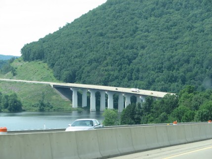 The day started in Pennsylvania of course and a really lovely little place – the Sheshequin Campground. It was wide and grassy and well looked after by Greg and his wife who bought it three years ago and ran it as a sideline; “we both have other jobs”. They had really thought hard about making it nice and Greg remembered that we were on a big road trip. He met me at the door of the office yesterday with a big grin: “How was day two?” he asked. It makes such a difference to the experience to have that kind of atmosphere. Quite a contrast to the rather stern lady at the Ferryboat Campground who met us with a smile and then got all tight-lipped and difficult, as if we were schoolkids spending rather too long hanging around the candy racks.