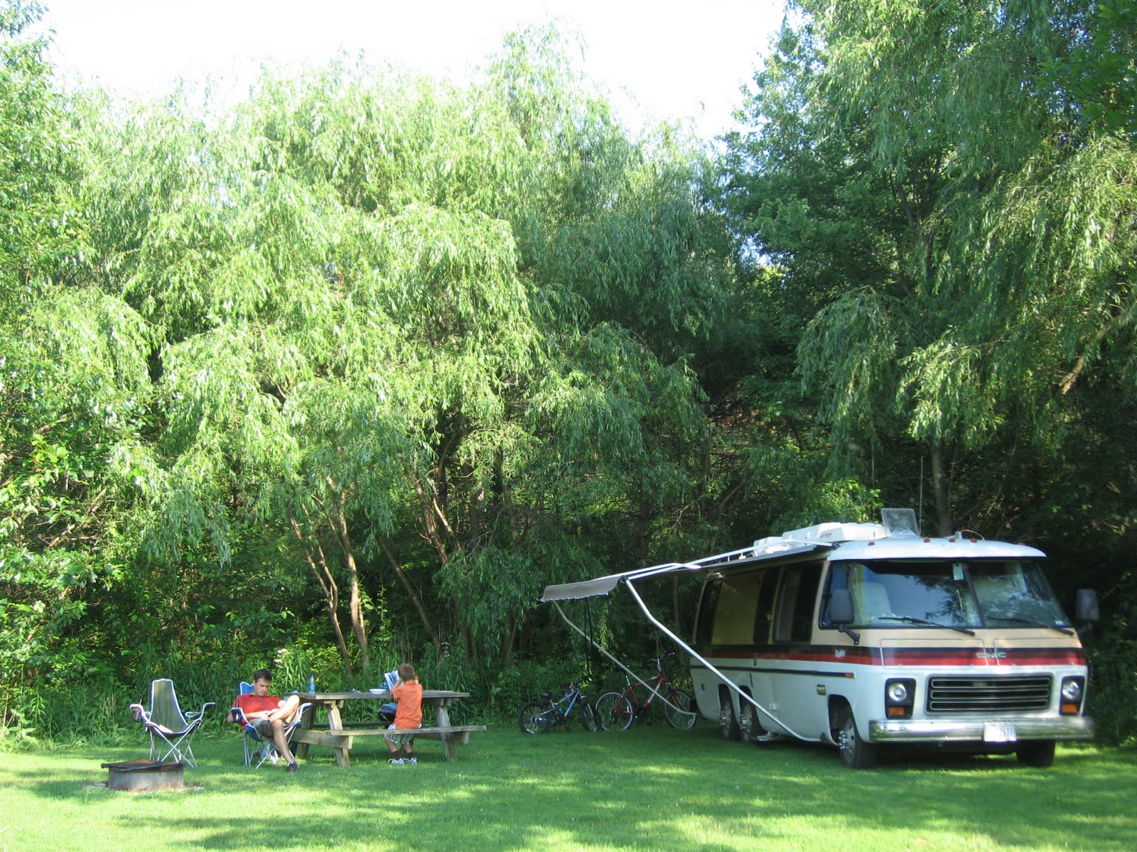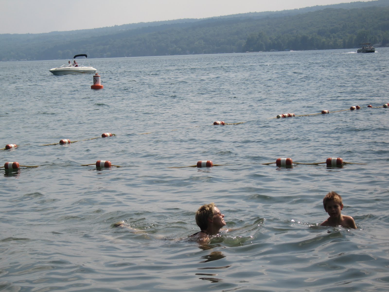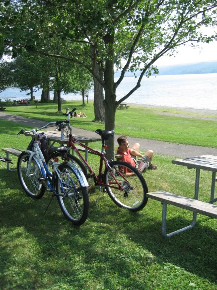 Keuka State Park is right on the lake. The campgrounds are neat and grassy and the guy next door immediately wanted to talk about Harv as we were getting set. Bikes off and down to the lake, freewheeling all the way and not thinking too much about the uphill ride back. It was hot and quiet.