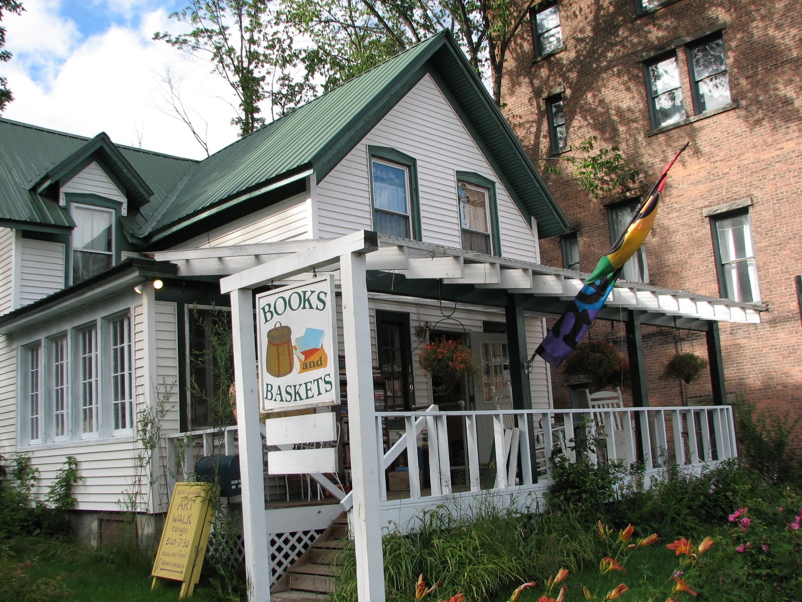The town made its name as a place for people who had TB to come and take the air. Its full of houses with deep porches to accommodate consumptive types, wrapped in quilts and sucking in great lungfulls of the good stuff. There are about a hundred and seventy such houses on the National Historic Register in Saranac Lake. We had lunch at the Blue Moon Cafe which had a good menu and that slightly offhand service that we have got used to. Our unsmiling waitress couldn’t wait to give us the cheque and when we asked someone else if we could get some coffee he said we could get it from the front ourselves. When we got there and asked for lattes he said “well why didn’t you say so before”. Ah well. We did use their wi-fi to catch up with the blogs and their electricity to recharge the laptops so we didn’t do too badly. I took Tom off to one of the two bookstores and he interrogated the owner as to the books he wanted. I found him on the other side of the counter telling the owner what to click on his computer as he searched his database. The guy was amused and we left with a book.