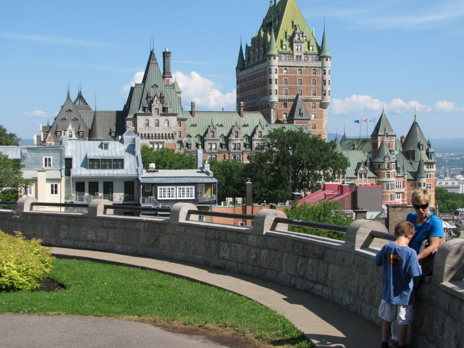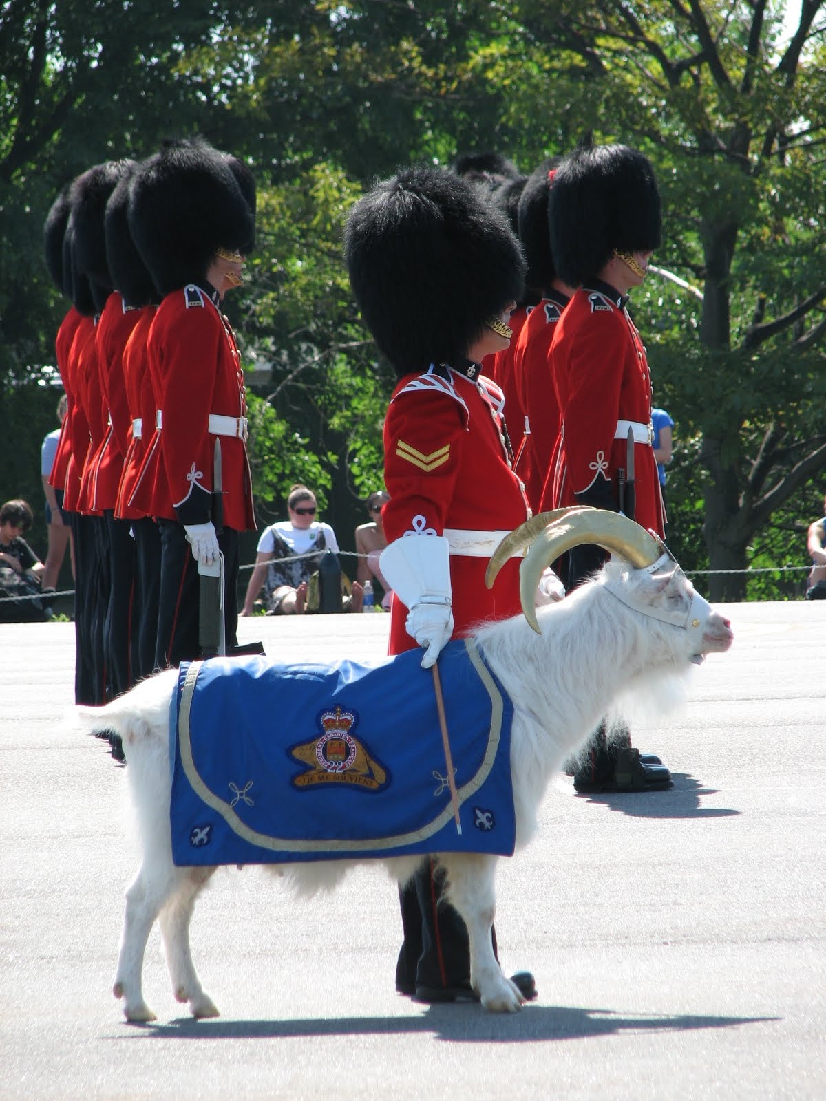 Quebec has upper and lower sections and we stepped out near the top into baking heat, and made our way up to the Citadel which stands guard over the river. It was actually built by us Brits as protection against marauding Americans. It never saw action – perhaps because it was generally agreed to be impregnable. Not to us though. We paid twenty bucks and we were in. And what’s more we got there just as they were changing the guard, so we got to see bearskinned soldiers marching about the parade ground with the ceremonial goat looking on. When we left, so did the outgoing guard unit. They had changed into their civies and there was a column of second-hand cars each with a solitary squaddie in it heading out of the citadel,. The goat was in a trailer at the back of the line.