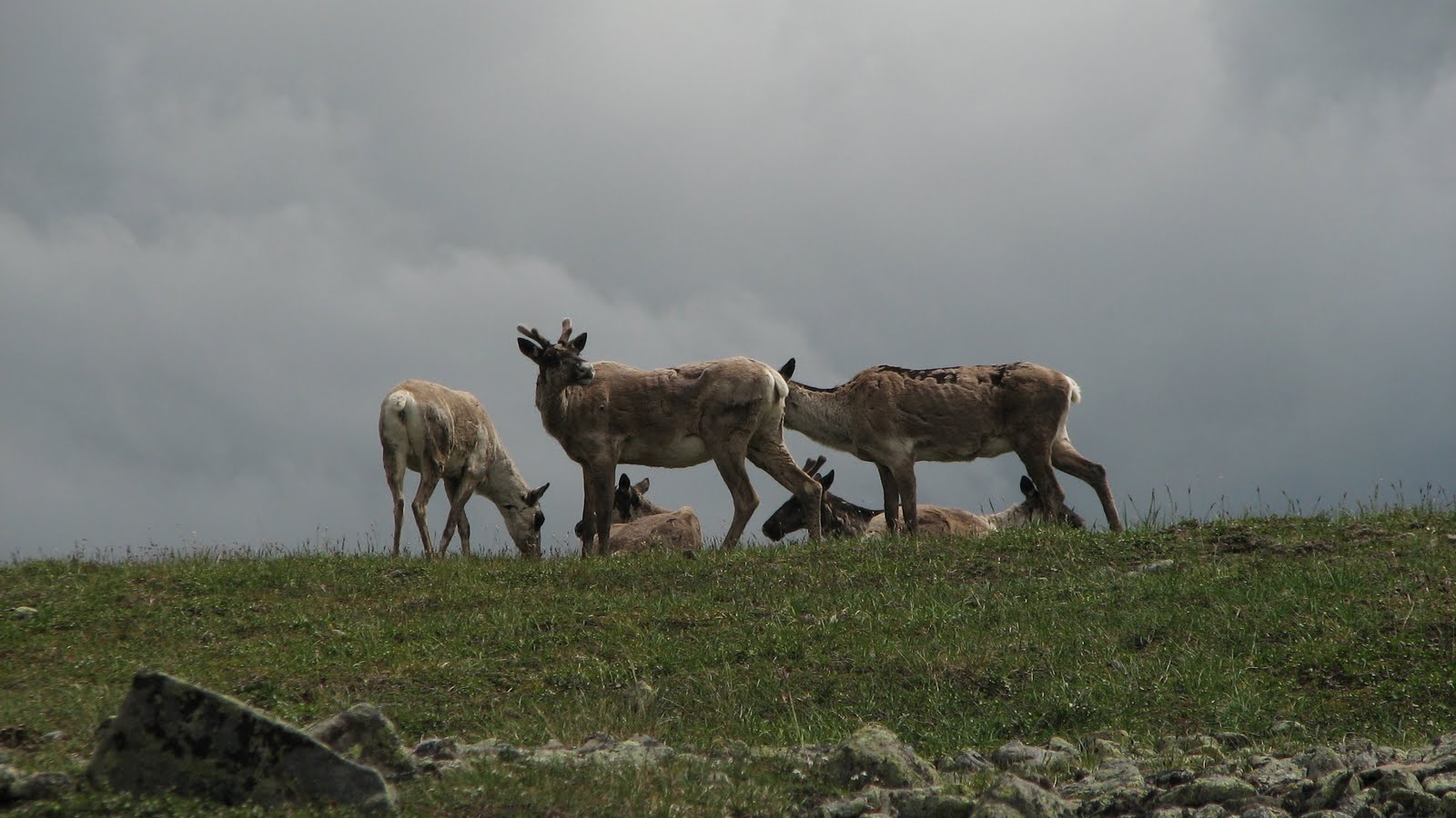 These caribou have evolved with much smaller horns than those further north to allow them to move through the forests more easily and their annual migraton is about three hundred meters – from one kind of forest, to another. If I was one of those Arctic caribou I think I’d be asking myself how come I have to migrate hundreds of miles when I could simply move south and play on the same mountain all year. It was a little sad to see them, as despite all efforts their numbers are still falling. There were only a handful of new calves this year.