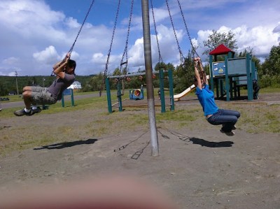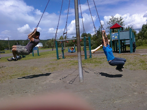 The road was smooth and fast and we hummed along it. Philippa and Tom played battleship in the back and Tom won more prizes which Kristin had so sweetly wrapped for him along with the games before we left. Thanks again Kristin! This feels like a strangely empty neck of the woods and we didn’t see houses or any real signs of communities for great stretches. There are towns here of course, but you really can’t see them from Highway 11. Bathurst and Miramichi came and went, as did the big blustery skies. Occasionally we would get a sudden, brief handful of rain flung at us but for most of the journey the rain seemed to have happened ten minutes before we got there and the road was steaming in the sunshine. We did get hit by one downpour and a river of water flowed across the road before the rain stopped instantly and the wipers were squeaking across the windscreen.