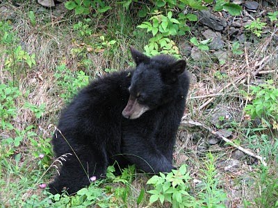 Cape Breton is right at the top of Nova Scotia, and the National Park encompasses some of the last wilderness in the province. It’s mountainous and craggy around the edges, boggy in the centre. Within one minute of crossing into the park we saw a glossy little black bear right next to us on the road. He snuffled about in the undergrowth completely unconcerned. Tom watched it wide eyed through the window – he was no more than ten feet away from the bear. It seemed to bode well for the next few days.