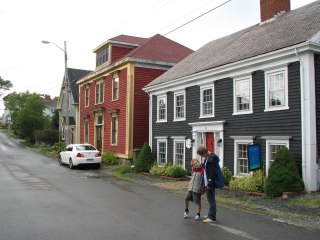 The tide is in – about twenty feet from our back window – and across the bay I can see a handful of orange lights twinkling against an inky sky. Breakers are breaking and the wind is whipping around us and all is very snug inside. We have just got back from an afternoon in Lunenburg which is a world heritage site, but more importantly it passed the Richard and Philippa “livability test” – ie if we had to live there, we wouldn’t complain too much.