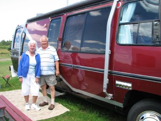 Just down the road is the King Neptune campsite which Nancy steered us towards to meet some friends of theirs who are part of the GMC Cosa Nostra. We pulled in and there was a burgundy GMC gleaming in the corner. It was empty and we were about to turn around when a little car pulled up alongside and Bill and Nita waved and smiled at the unfamiliar GMC in their midst. They were great fun and we compared notes about our vehicles and looked over the interiors. They are so infinitely customiseable that every one seems to be different. We talked about our trip and Nita said they had been to Gaspe many years ago. “We should never have gone” she said “we had only just bought our GMC and didn’t have a clue about what we were doing”. She shook her head, smiling at the memory.