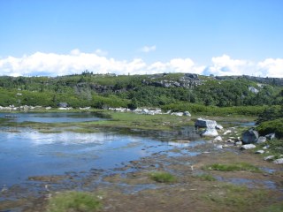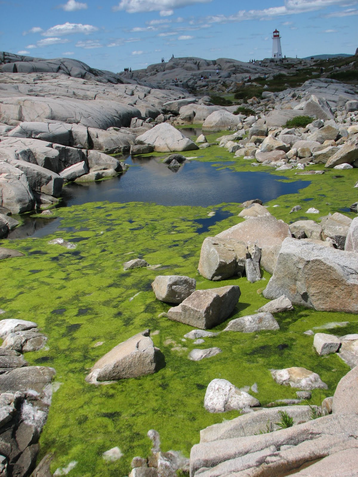 Peggy’s Cove is the most famous of the pretty little coastal villages in this region and consequently the busiest. But the road from Halifax takes you through postcard territory with deep blue inlets fringed with ochre coloured rocks. There are crisp little clapboard cottages and older fishing shacks on stilts over the water, sagging with age, red paint faded in the sun. The road also passes through an area called the Barrens which is a strange netherworld between the sea and the shore. Grassy hillocks topped with large stranded rocks rise around shallow pools of seawater cut off by the tide. It was an eerie and beautiful landscape.