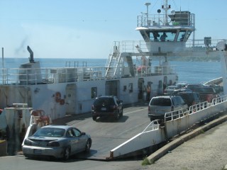 Waiting for the ferry back, there was a board about the history of the ferry service, which started with a sailboat in the in the 19th century. It later became motorized and run by ferrymen with terrific names: Cossaboom, Sollow and Outhouse.