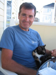 We walked into the Digby harbourfront. Its a fairly plain little town with a handful of restaurants and what looks like a busy harbour. We had a plain little supper enlivened by the presence of a little cat, a stray rescued by the restaurant owner and getting used to people. The waitress said it wouldn’t let anyone pick it up, but it hopped up on me and went to sleep.