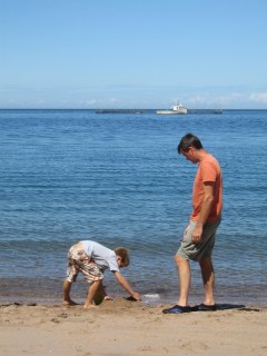 The next few hours were taken up with sandcastle construction, reading, dozing, eating hamburgers for lunch made by Dad, more sandcastles, more reading and well, you get the idea. We all had too much sun and the sea was too cold to swim in but looked lovely.