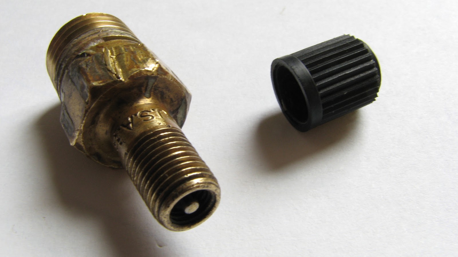 And here…BEHOLD the $3 Schrader valve that was supposed to keep the air in the air pump tank, but secretly let it all out very slowly so I wouldn’t find out about it and tell it to stop. Well I did find out and took it straight off. Finding a new one was not easy given that I couldn’t think how to describe it other than as “that air valve thingy” but Ace hardware online came up trumps and the new one went straight in with an air of no-nonsense authority. The air doesn’t sneak past IT let me tell you.