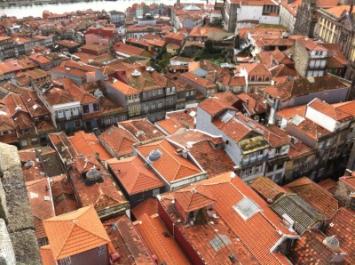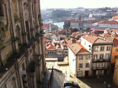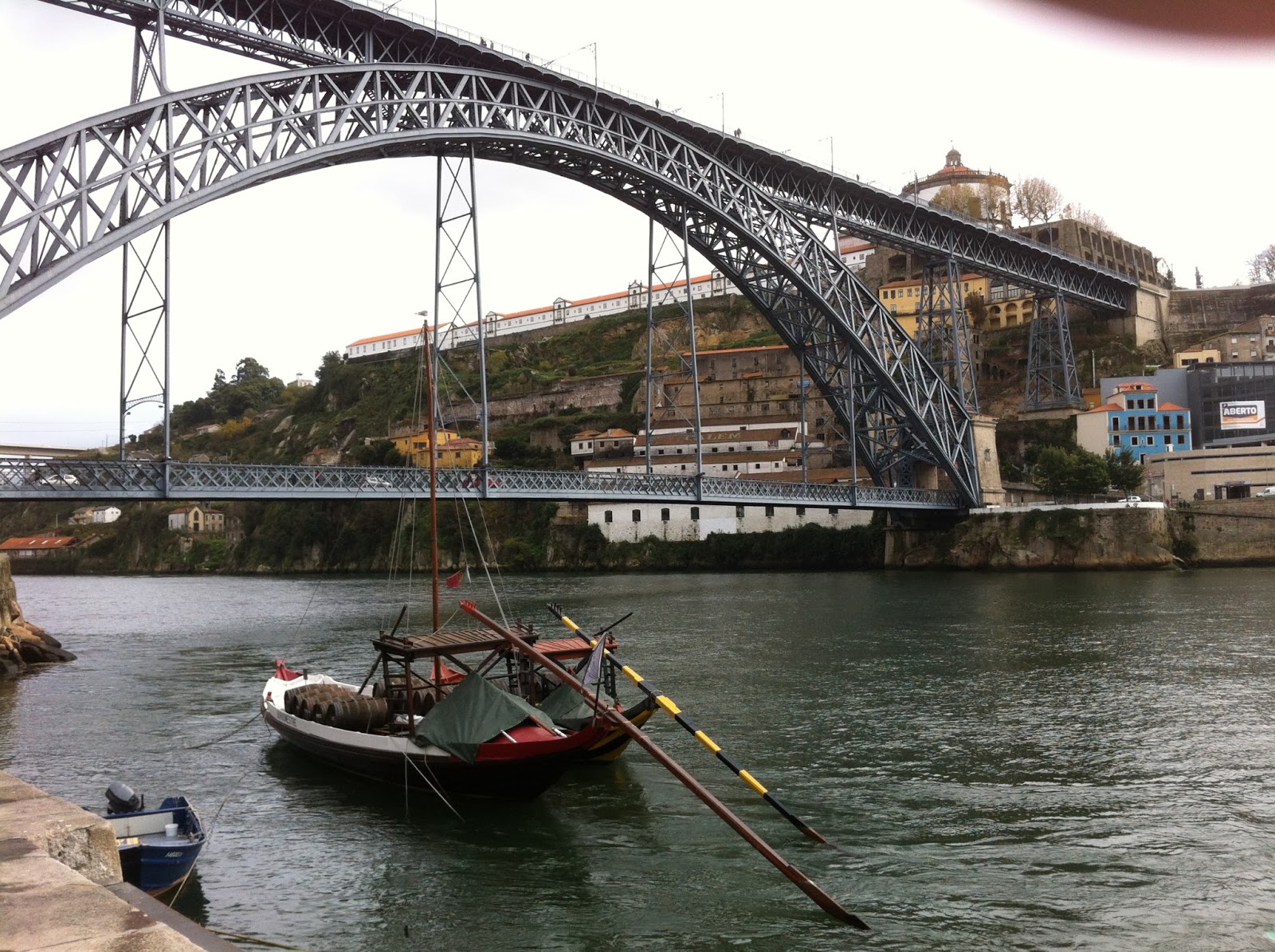 Next stop, the 18th century Clerigos tower, which charges a hefty two euro entrance fee (nothing seems to be a rip-off in Porto). It’s from the refreshingly straightforward school of take-no-prisoners-tourism, with steep stone steps becoming increasingly narrow, until they open out onto the tiny viewing platform with gaps between the stone balustrades which are exactly toddler sized. The view is sensational, across brick-red roofs to monolithic churches like big stone islands, and down to the river Douro dotted with the barges once used for delivering barrels of port. They have an air of an Arab dhow about them with their fine curving prows like scimitars.