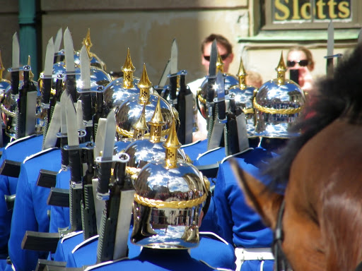 We spent yesterday walking through the old town; where soldiers in blue and white uniforms with chrome spiked helmets changed the guard at the Royal Palace, with much strutting and moving people out of the way.