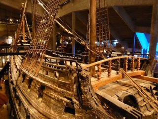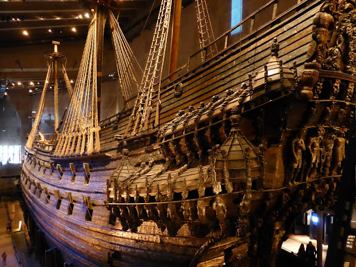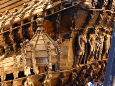 The high spot of our day of tourism was probably the Vasa Museet – the museum housing a mighty seventeenth century warship – the Vasa. It had been launched with some fanfare in 1628 and got to the mouth of Stockholm harbour where, penants flying and canon proudly displayed, it promptly sank with the loss of thirty three hands. Apparently it had been designed in a way that left it too top-heavy. It lay on the seabed until the early nineteen sixties when a very determined salvage expert re-discovered it and set about raising it. It was ninety eight percent complete and in extraordinarily good condition. They actually floated it back into a dock, complete with many of
