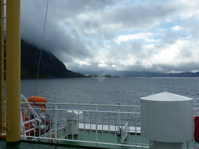 So then to Forøya and the little ferry to Åskardet which appeared out of the mist on the milky-blue meltwater that fills the fjord. When the leathery-faced ticket collector appeared at our window I ‘fessed up that Thor, at more than seven meters long, is into the next price bracket, but he gave me a wink and said “I think seven” and gave us the lower fare.