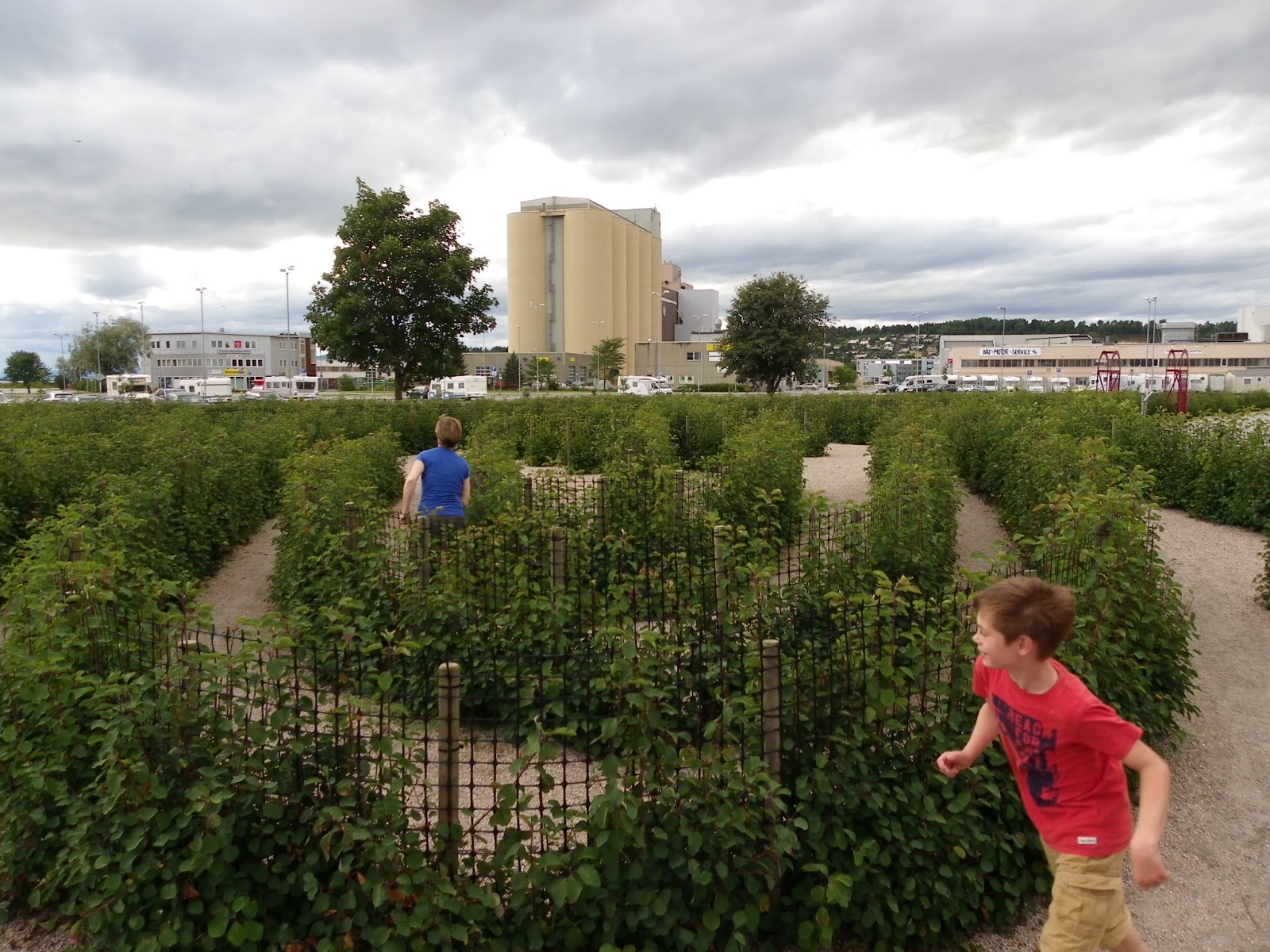 The town was bombed flat by the Germans in WW2 and replaced by what the Rough Guide kindly calls a “tidy” new town. Next to where we parked, at the edge of a vast shopping centre they were growing a hedge maze which Philippa and Tom ran around in, and we saw a young Mum and toddler get lost in as we were leaving. She was trying a locked side exit with a frown.