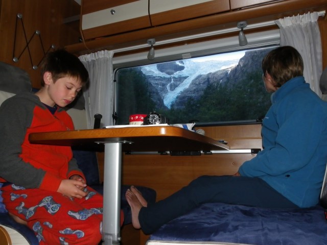 The campsite had a weekend feel about it this morning with most of the spaces taken. Two big RVs came in while we were having supper last night and parked in the middle of our view of the fjord. Everyone was setting out their camping chairs and socialising and it felt like time for us to move on.