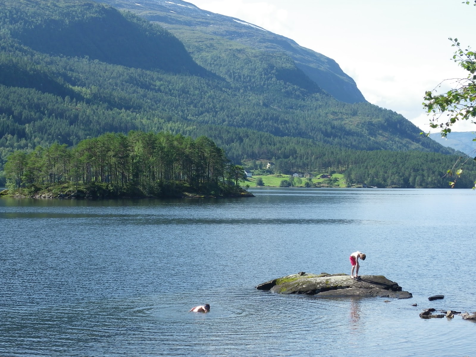 Tom donned swimming trunks and very nearly swam in Europe’s deepest lake, but preferred charging around with a large stick. P made a picnic lunch for us and we sat in the sunshine enjoying the tranquillity of it all.