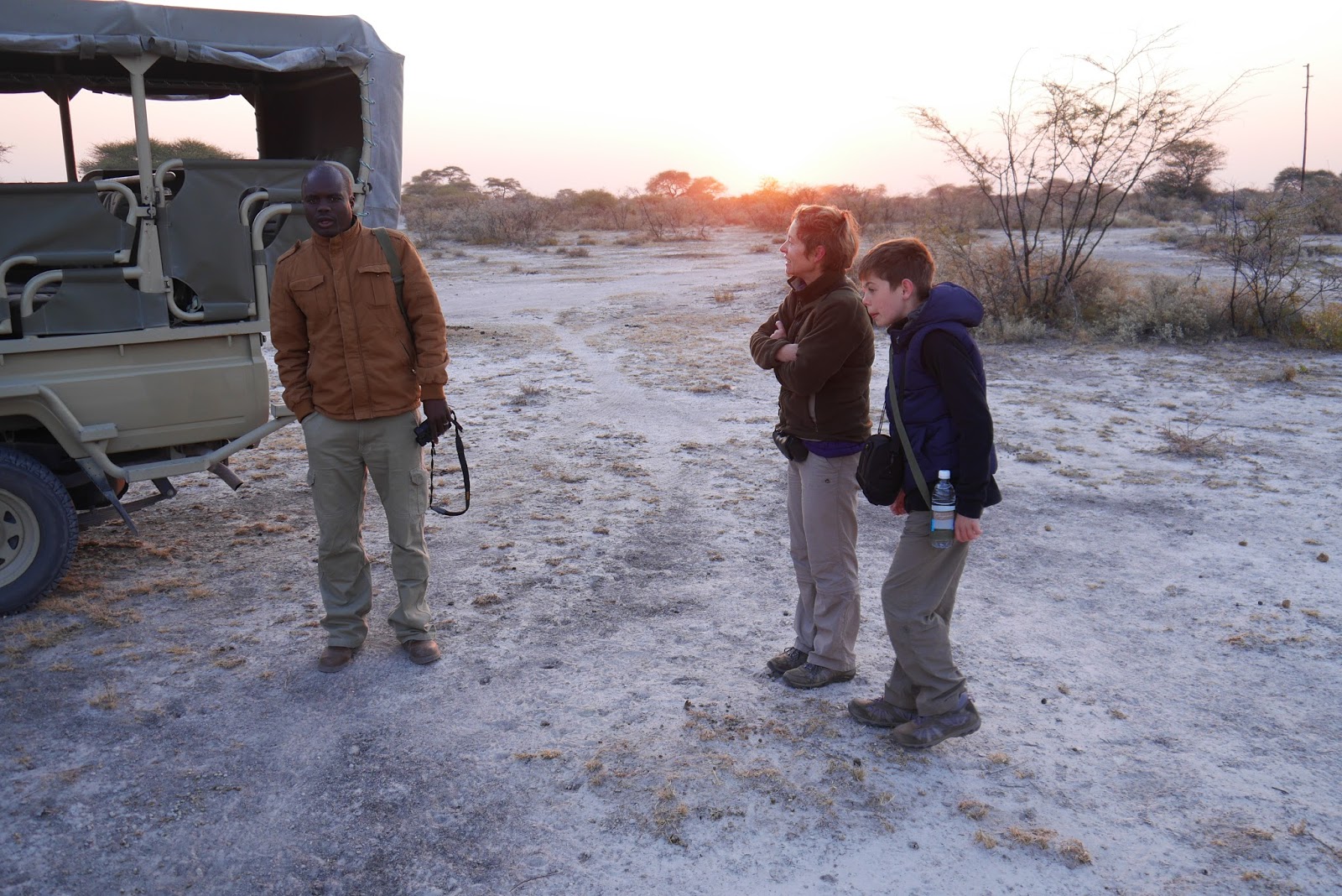We started the day early with a game walk which involved meeting at reception at 6.30. We took a short drive in an open jeep to get to the start of the trail and it was unbeLIEVably cold. We were only in the jeep for ten minutes and my ears just about fell off. T and P had sensibly worn the warm padded vests we all got for just such an occasion. I had less sensibly left mine behind.