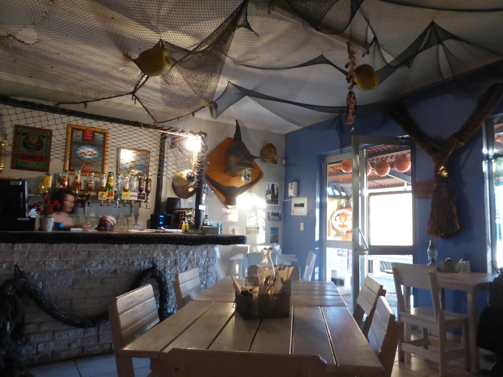 A little further down the road is Henties Bay, a pastel coloured village by the sea with a hole-in-the-wall restaurant called “Fishy Corner” which promised great things… And it delivered! Inside, it was all fishing nets and white-plank tables with a mounted marlin head on the wall.