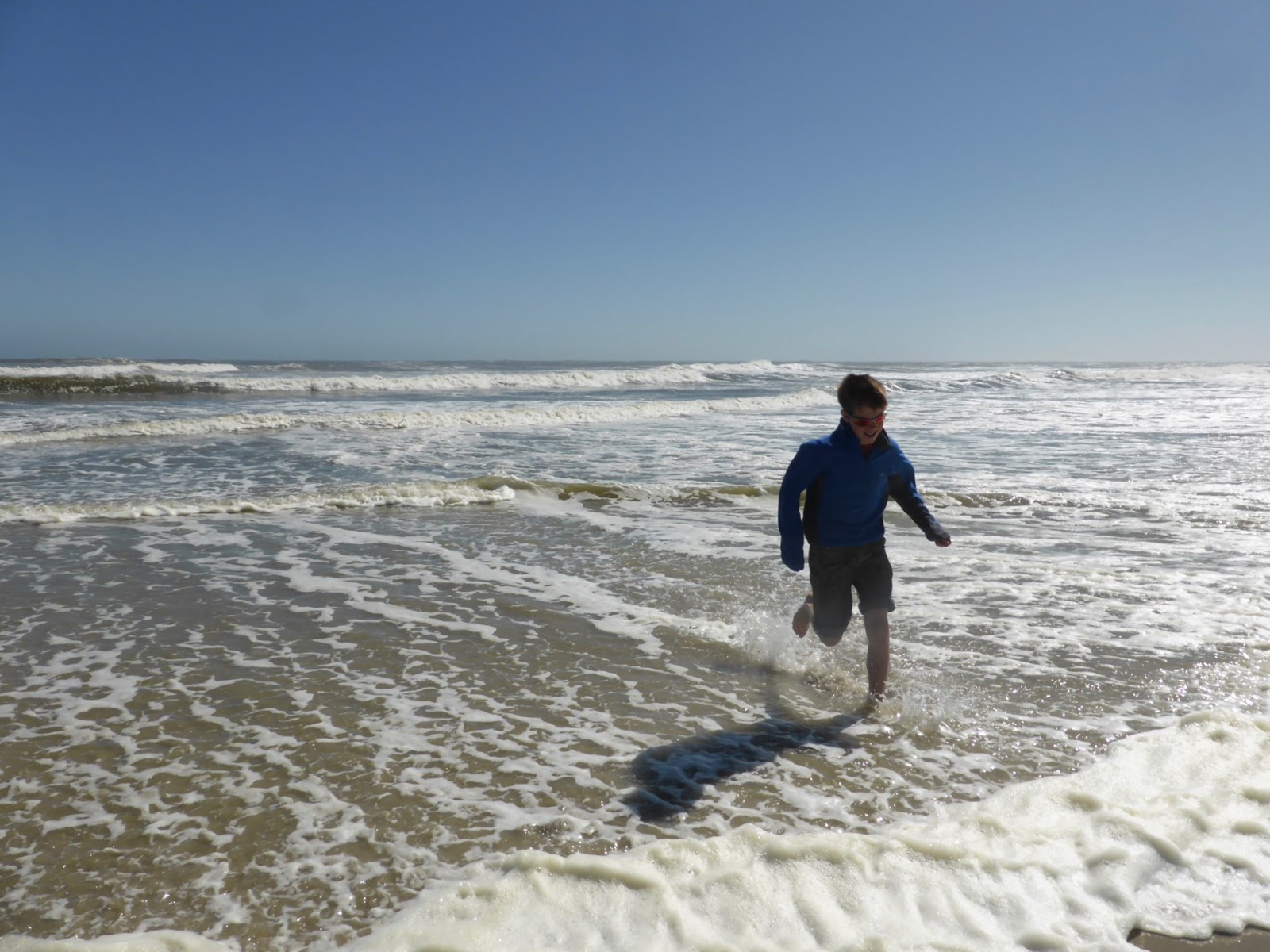 The wind was blowing, the sea was pounding, the sand was almost too bright to look at in the brilliant sunshine.