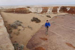 Next stop, the world’s second largest canyon (by volume), a solid three hours away and our furthest point south. It was an unremarkable drive through gravel plains. Wooden electricity pylons marched off to the horizon. Gravel trucks wooshed by. Now and then we drove over sandy river beds, but we didn’t see a single animal. It may be the aridity, or it may be the proximity to the hunters of South Africa who wiped out so much of Namibia’s game but there are far fewer animals in the south it seems.