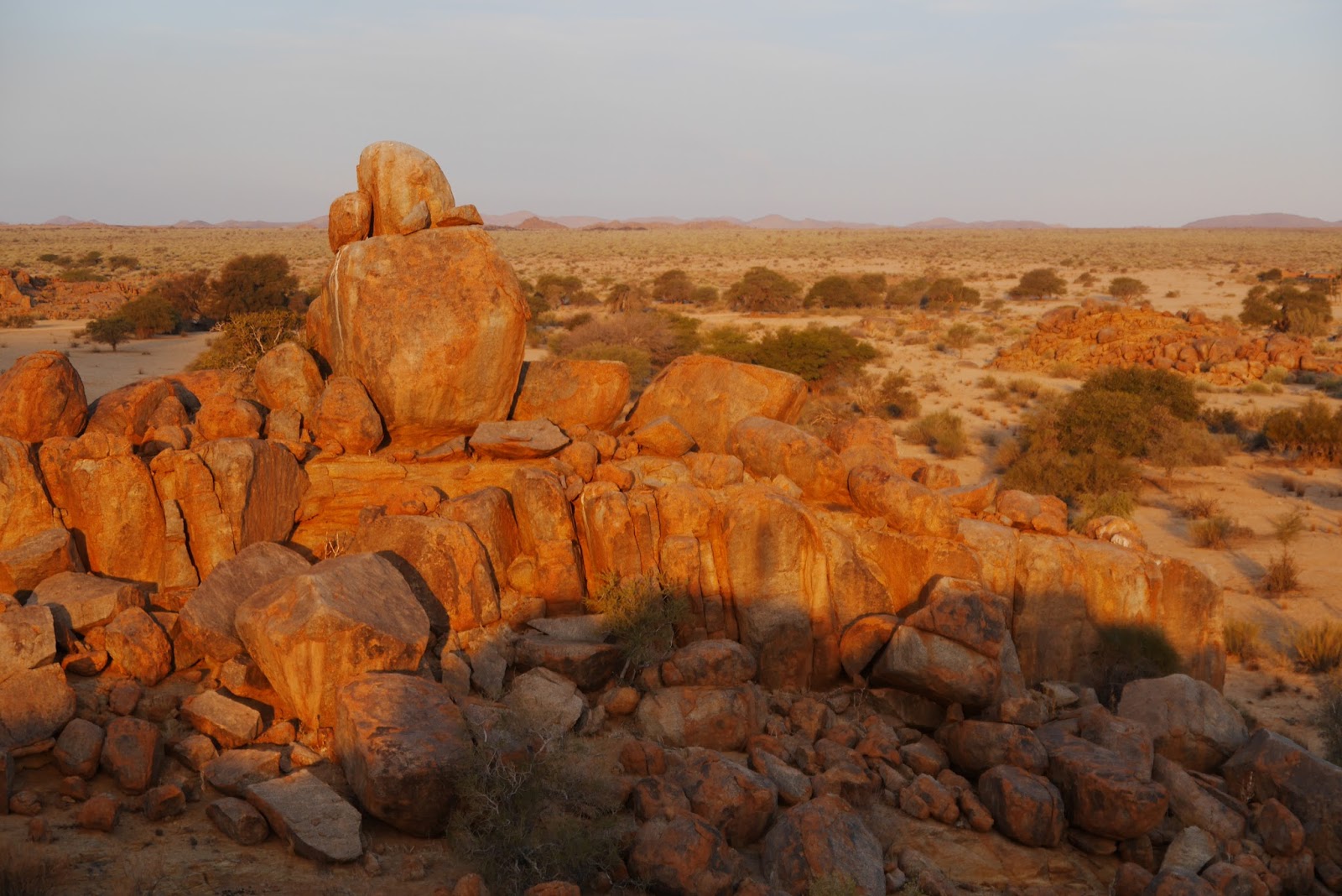 Just before the Canyon Lodge we stopped at one of the boulder hills for a run about and to watch the sunset. Off in the distance we could see the gorges of the Fish River weaving through the desert. The sun slowly rose up and off the boulder tops around us.