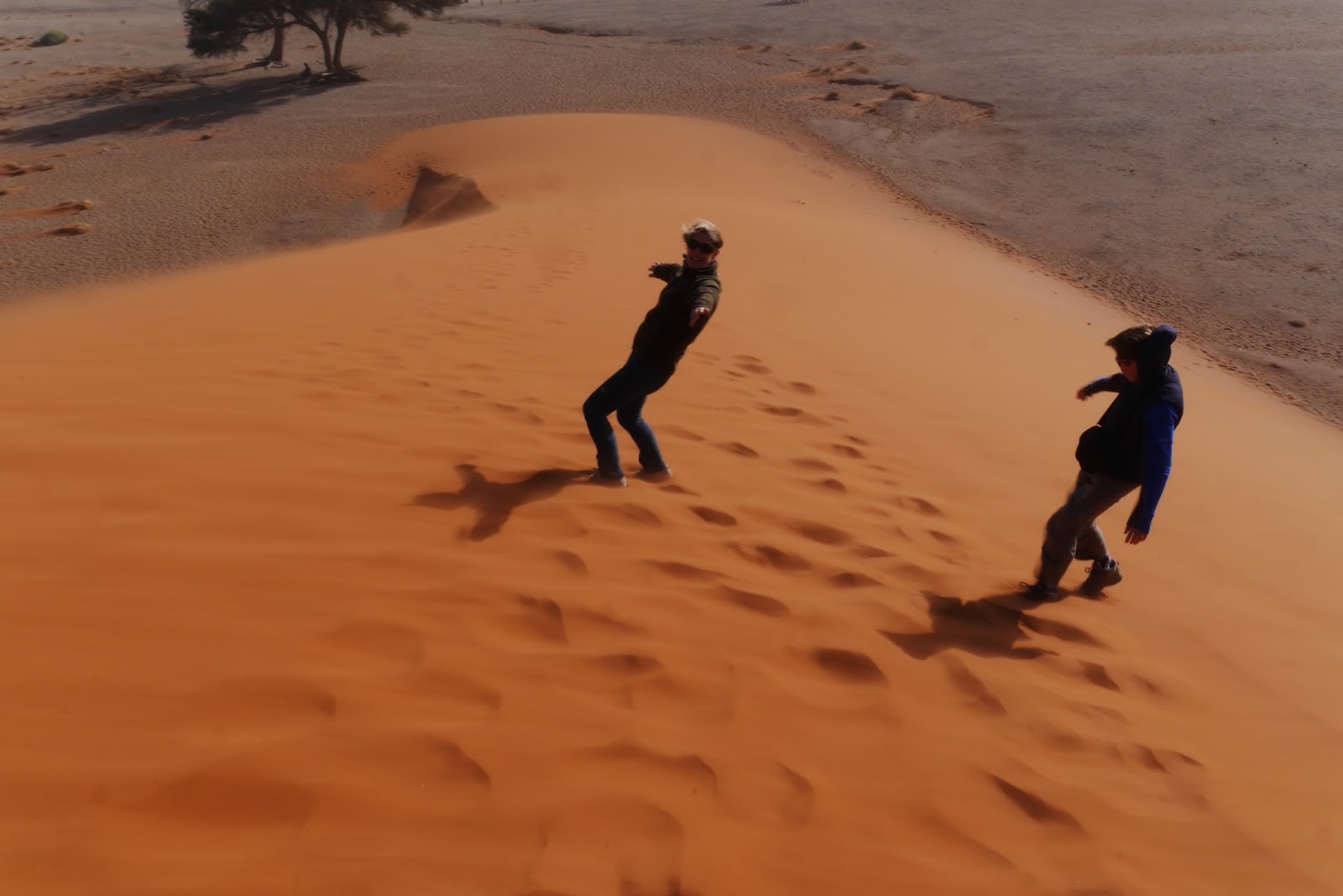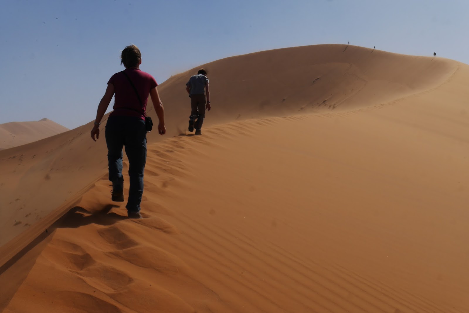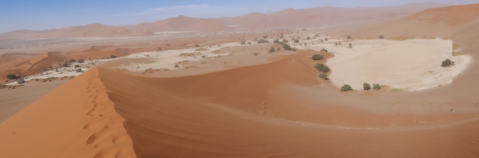 It was a surreal feeling to be there on that mighty dune with the wind howling and the ghostly shapes of other big dunes appearing through the dusty, sunlit haze.