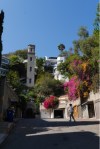 It’s in a wonderfully higgledy-piggledy maze of narrow pathways which climb the steep slope and ours is one of four distinctive houses built in 1937 which look rather like part of the curving white superstructure of a classic ocean liner. As well as the steep pathways there is a magnificent elevator tower built in 1920 in the style of Bolognese campinale, with a pointed tile roof. It houses a rattling cage-elevator which is apparently the last of its kind in the city and can be repaired by only one company. It’s featured in at least three movies: Dead Again, The Long Goodbye and The High Window and it appears in a number of Hollywood novels too including a couple by Michael Connolly. The top of it is also bang smack opposite our roof terrace, with downtown LA sweeping out behind it. Immediately below us looks and feels like an Italian village; a jumble of small houses in warm pastel colours with thick roof tiles spilling down the hillside. Somewhere in here is Frank Lloyd Wright’s first project too. We shall go and look for it.