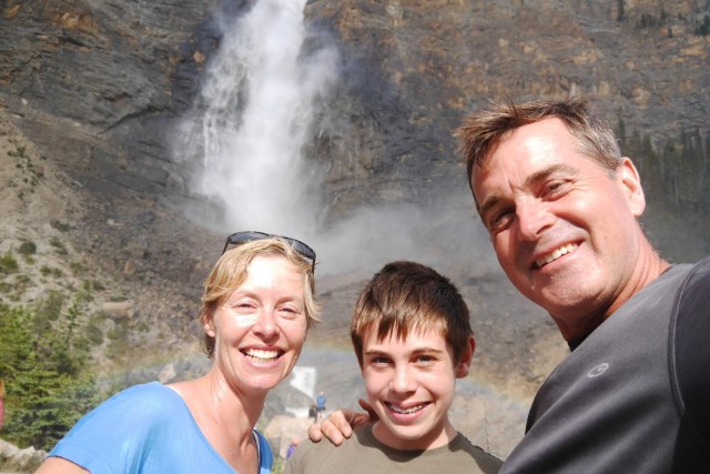 By the time we got to the Yoho River and the final four and a half K we were all bone tired. Soon though we could see spray emerging from the cliff signalling the Takakkaw Falls and journey’s end.