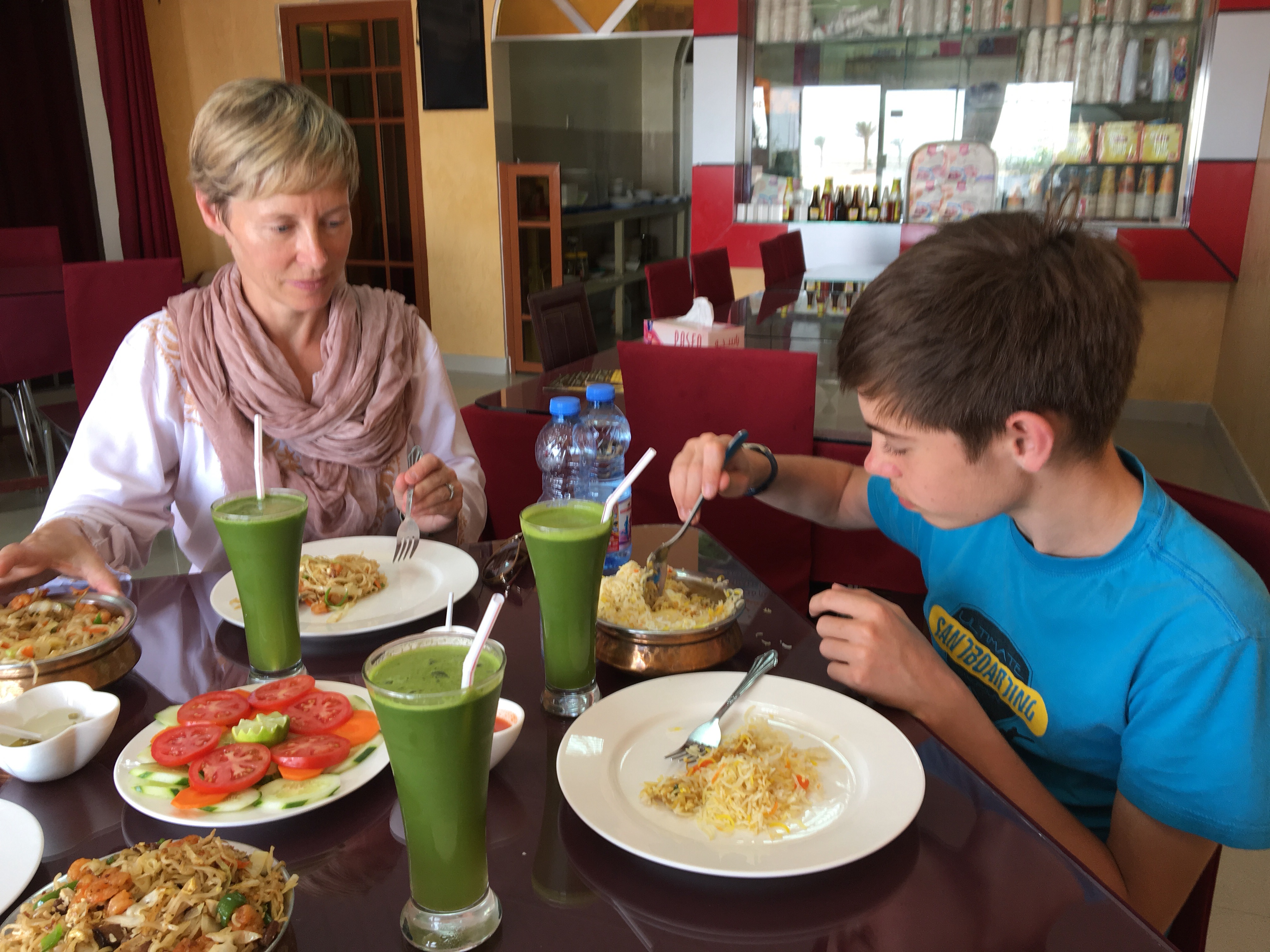 And on, to Thumrait which appeared at first glance to be not much more than a glorified truck stop but in fact is a decent size town, and as with everywhere else here, getting bigger. We refueled – the opportunities are few and far between here – and found a restaurant for lunch. We got a single dish each and when they came, remembered that one dish for three of us would probably have been fine.