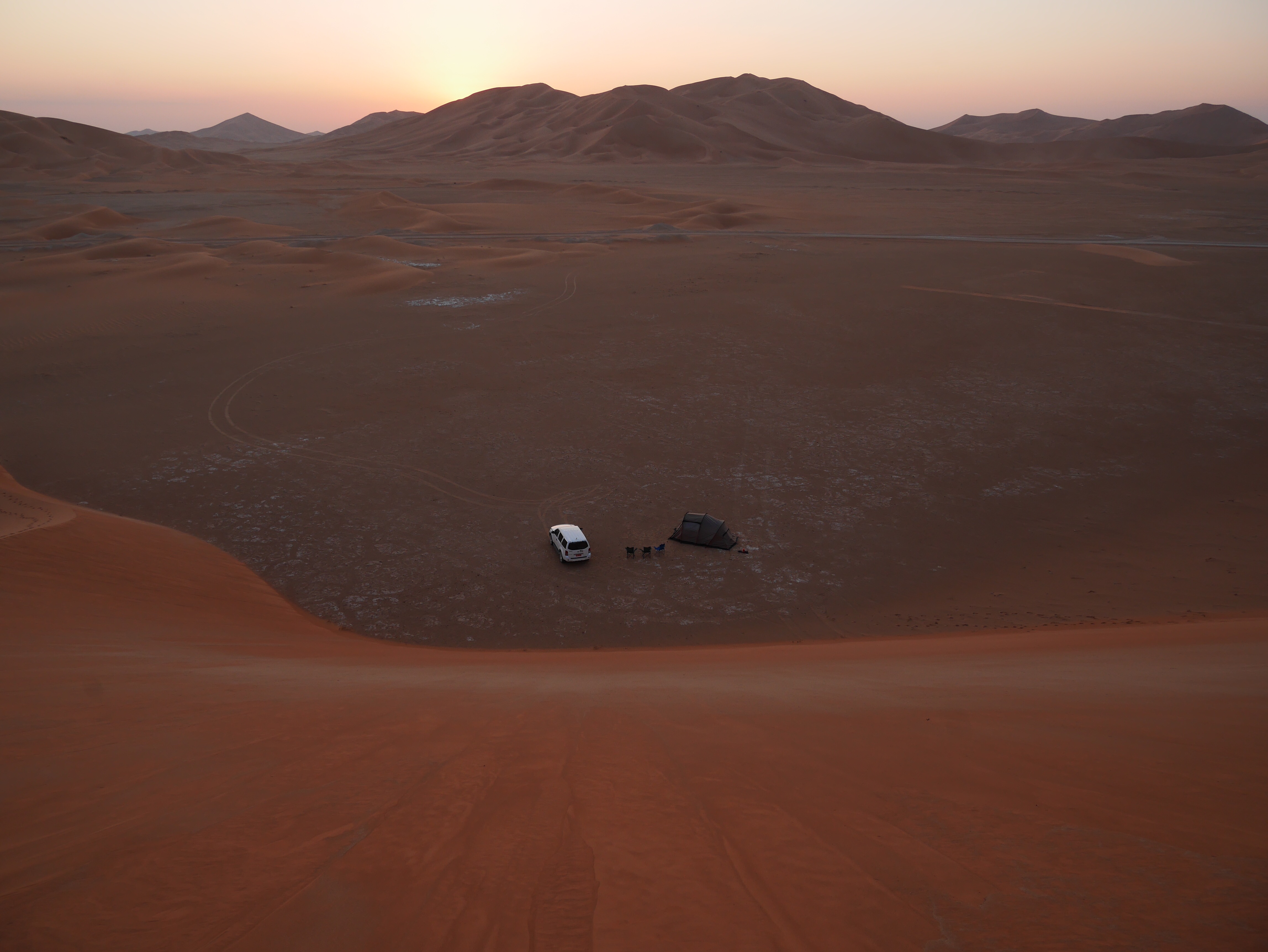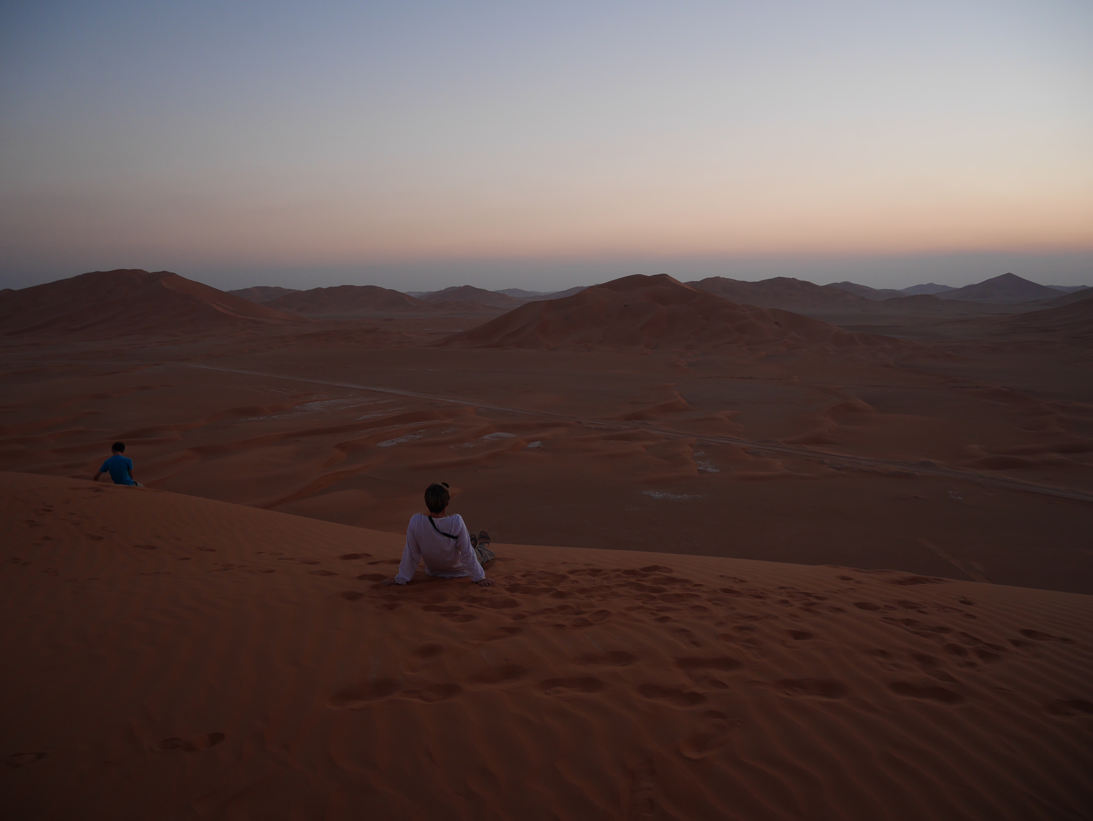 And then off in the distance in the late afternoon sun, a line of big dunes marking the start of the Rub al Khali. It was a thrilling, awe-inspiring sight seeing these huge hills of sand lined up like the border into another country.