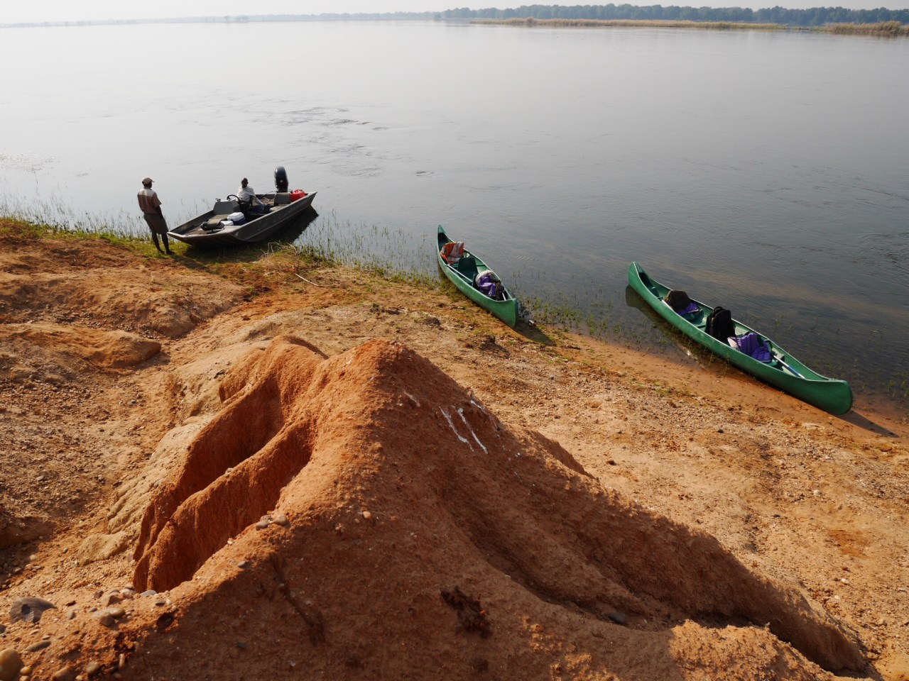 Three hours after we set off, we came to the Park boundary where we reluctantly left our canoes and signed in at an office surrounded by hopeful baboons.