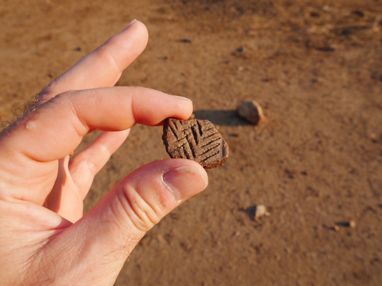 Akim took us to a broad, flat area with a few baobabs but little scrub. It had been the site of a village. Several had been moved when they created the GMA and the park, in a process which I suspect was not particularly happy for the villagers. We found scraps of pottery, some with delicate patterns.