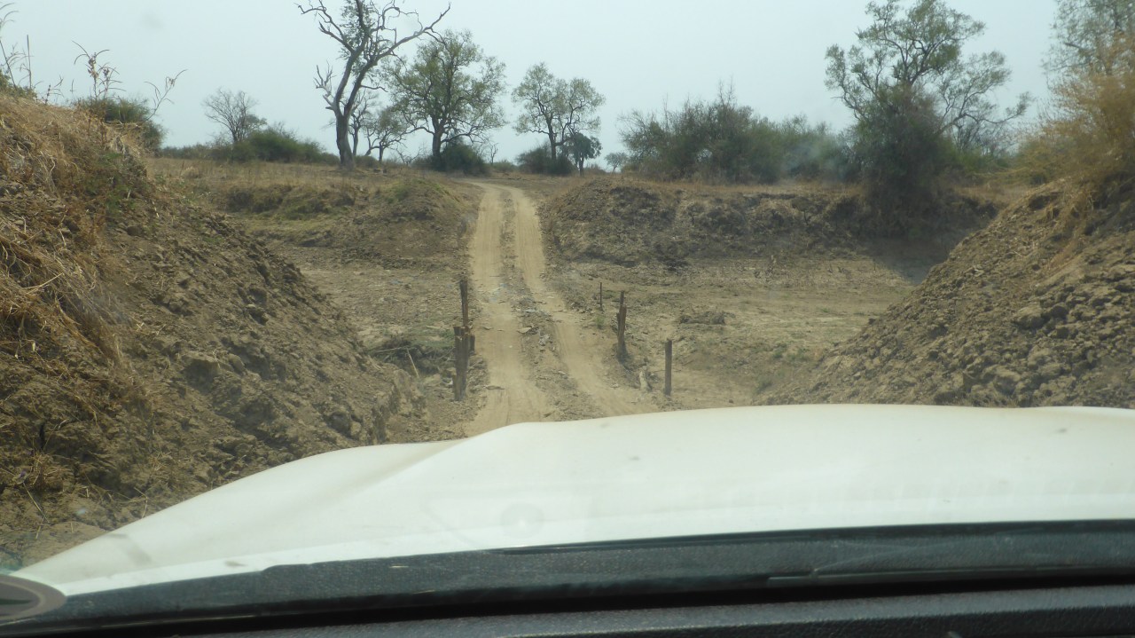 After driving through the busy village outside the park we found the turnoff from the tarmac hidden between two buildings. The single track mud road, cratered with potholes didn’t feel like the start of the D104 which seemed a lot more substantial on the map. But it was. There were lots of people on bikes or walking by the side of the road and eventually we came to accept that we were in fact going the right way. Soon the villages were behind us.