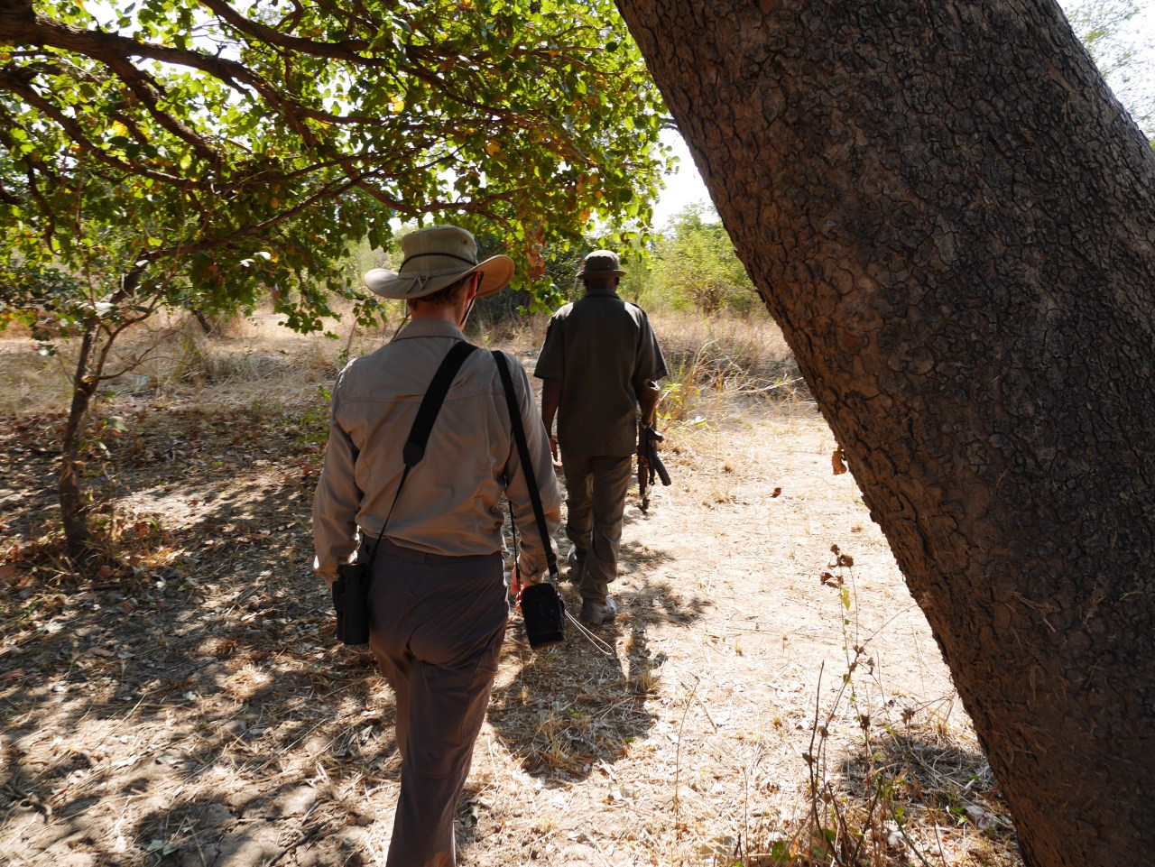 We’d already been told that it’s not really safe to stray out into the bush beyond the perimeter of the camp, so we were getting things ready for breakfast and discussing what to do with our day when our scout came by with one of the attendants and suggested that he took us for a game walk. Having failed to really get their names when we all did the introductions I’m now too embarrassed to ask them again.