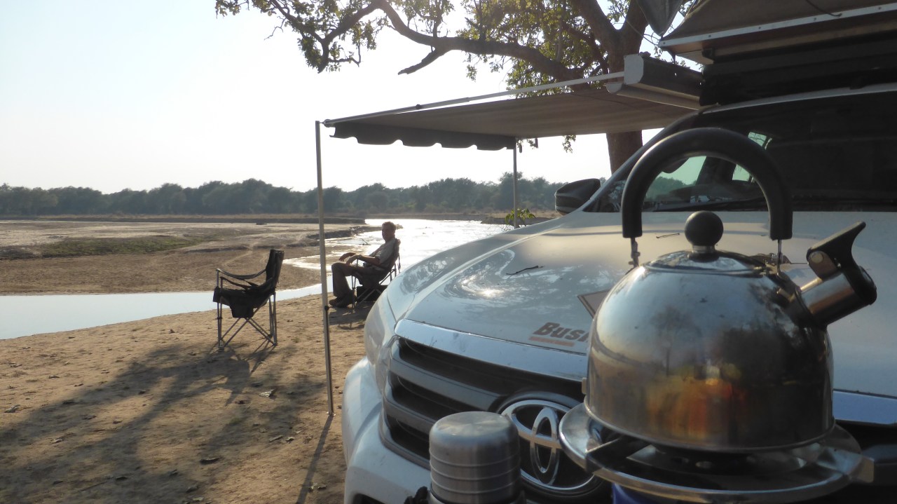 In the heat of the day we sat in the shade watching the river, reading and blogging. The attendants seemed to be sleeping. It was that sort of day and good to recharge after some tough drives.