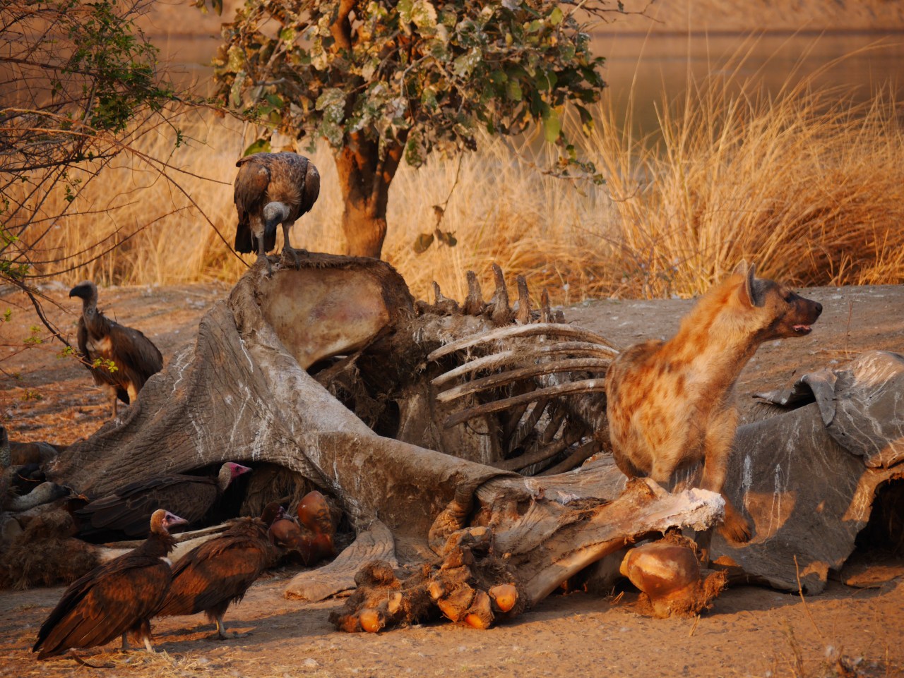 Walia took us to a place where an elephant had died a couple of weeks earlier. It was shrouded by hunched vultures and patrolled by Hyena. The elephant, which had died of old age was just skin and bones now. A couple of giraffe stood back, staring at it.