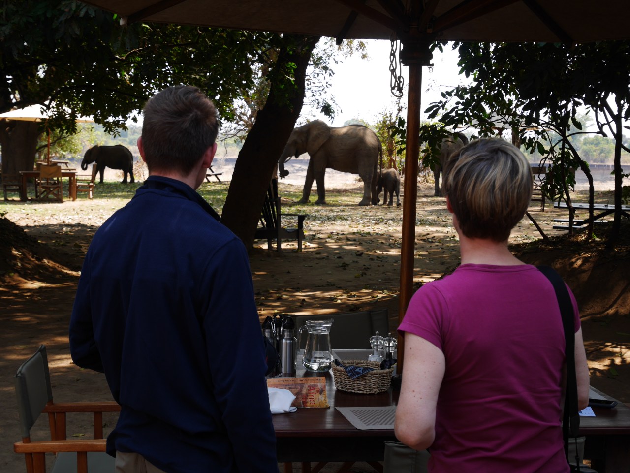 We were back at Flatdogs shortly after ten for coffee and blogging and a general wind-down. It was nice to have some space in the middle of the day. There were elephants wondering about at the edges of the camp which meant sometimes people couldn’t go back to their tents and had to evacuate the pool. I’ll be writing a letter of complaint obviously.