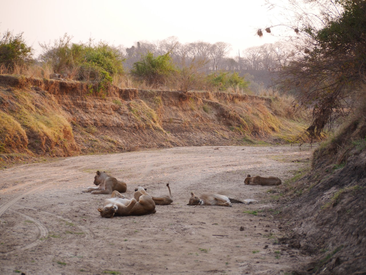 Just before sunset we (and several other vehicles) found a pride of lions sleeping in the sandy bed of a dry river.