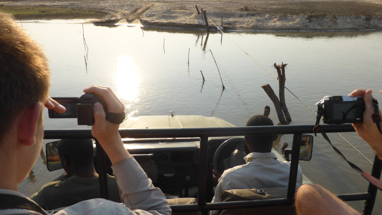 We stopped for coffee and biscuits overlooking the river, with hippo grunting and crocs lying still and sinister in the sunshine.