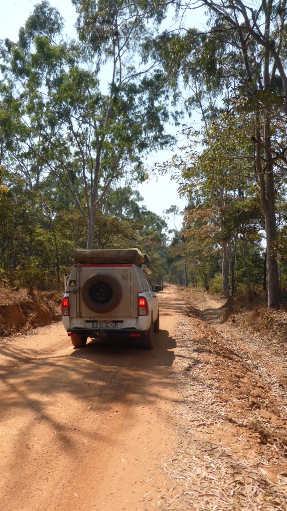 77K later we turned off for Kapishya onto a red dirt track through tall, beautiful woodland.