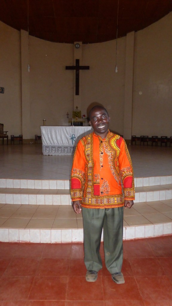 Katibunga seemed a green and relatively prosperous looking place, surrounded by lush green fields. Irrigation pipes threw sparkling streams of water over them. And looming over it was a vast church, part of the mission complex. We went looking for our road to Chitembo, passing through another raggedy Main Street. We found a turnoff and asked a couple of girls: “Chitembo?”. They looked at us blankly. We tried every variation of “Chitembo” but nothing. We asked a couple of young lads “Chitembo?” More blank looks. Then we tried the name of the other destination reached by a road going from the village “Mpika?” Yes, there were nods and points. We’d found the road to somewhere we didn’t want to go. It is also on the Great North Road but much further south. Philippa sensibly suggested we went to the mission and asked there so we drove back and pulled up in front of a white plastered building with a little shop. Once inside a young man in a brilliantly coloured shirt followed us in and said “Hello, I am Father Deogratius. Can I help”. With a name like that, if he couldn’t help, no one could. We dug out our map and pointed to Chitembo and the Great North Road and he too looked blankly at “Chitembo” and said the road we needed came out somewhere called Lwanya and there was no direct route. We would have to drive all the way back to Mukungule and find the turn we’d obviously missed. But first, he showed us his church.
