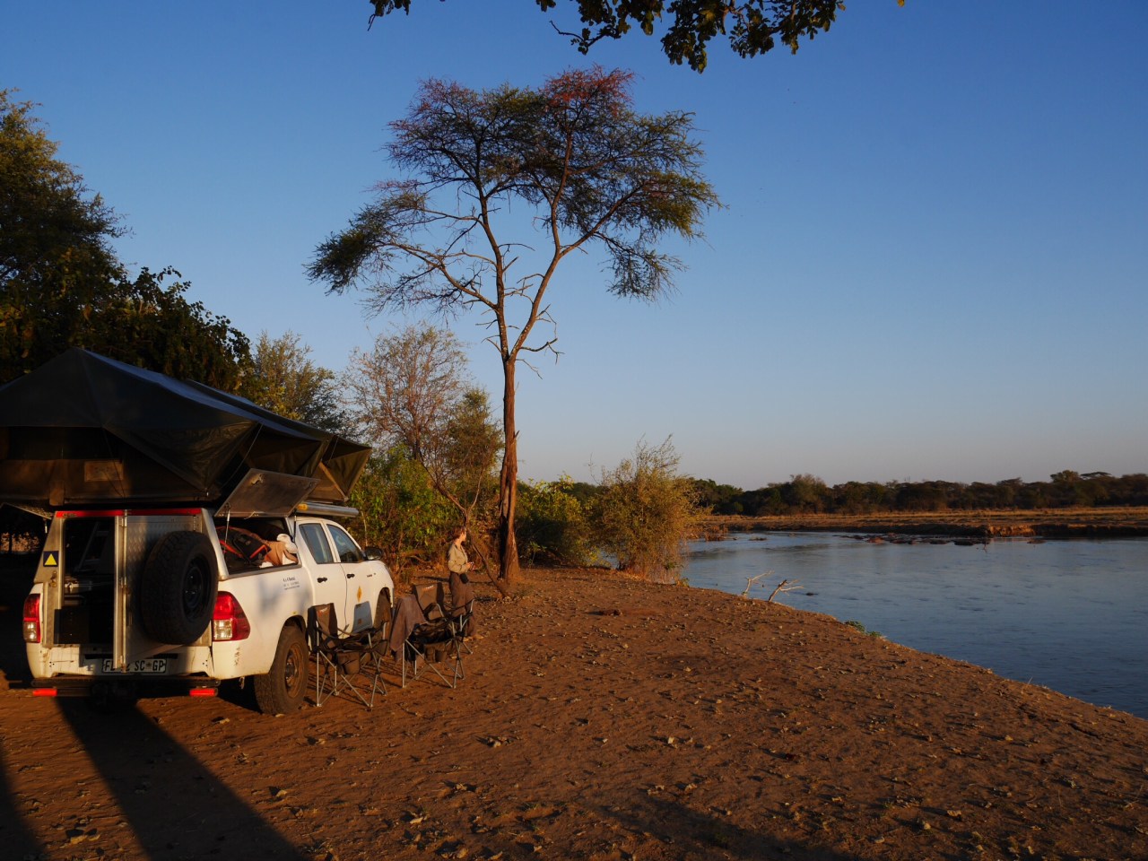 It is a very low-key compound with reed-thatched roofs sheltering beds covered in mosquito netting. Each hut is open at the end overlooking the Mwaleshi river.