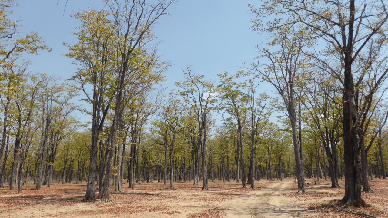 With no gps roadmap to follow we were relying on coordinates to pick out the junctions we needed, which were listed in the Bradt guide. We found the first and headed north on a smooth track through mopane forest. There were a fair few people on bikes carrying firewood or bundles of thatch or sacks of vegetables and they always immediately pulled off the road to let us pass. We always said hello and thanked them and they always returned our greetings cheerfully.