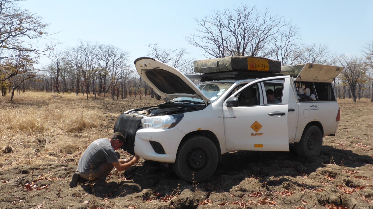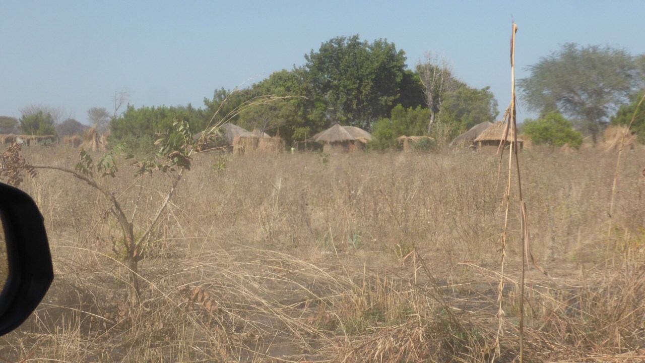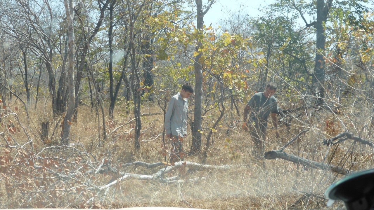 The next coordinate was across an old and overgrown airstrip, with a skeletal windsock, lying limp in the heat. A left turn towards a dusty village and on into more trees. So far so good and we’d made much better progress than we’d thought we would. The next coordinate was for a right turn past a disused bush camp, onto an old game viewing track. We took it.