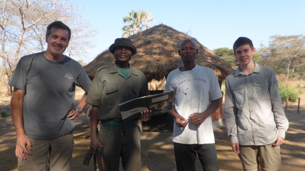 North Luangwa only gets a few hundred visitors a year and the northern part of it is a rhino protection area, patrolled against poachers. So they are fairly fussy about who goes in and out and for how long. We sat with a ranger under the shade of a thorn tree. There was much paperwork involving carbon copies and names and dates and license plates and the payment of many dollars. We were the second people through that day and the ranger radio’d Buffalo Camp to say we were on our way. I picked thorns out of my scalp where I’d been a bit too quick standing up and then we went back to the pontoon.