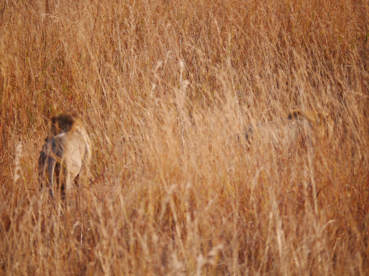 The pattern at Buffalo Camp is a light breakfast, then a game walk, then brunch. So after corn flakes and toast at 6.15 we climbed onto the vehicle for a ride to Zebra Plain, from where we would walk back. The air was chilly as the low sun had yet to warm anything up. Everything was lit with a golden glow and long shadows. We weaved through elephant grass two meters tall and as we emerged from one patch we saw three male lions lying down in another, ahead of us. They weren’t panicked, but decided to move deeper into the grass, becoming invisible almost immediately as the grass closed around them.