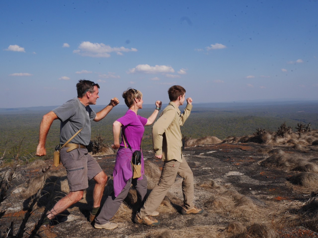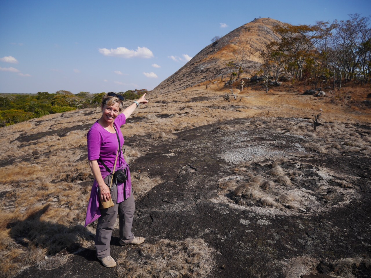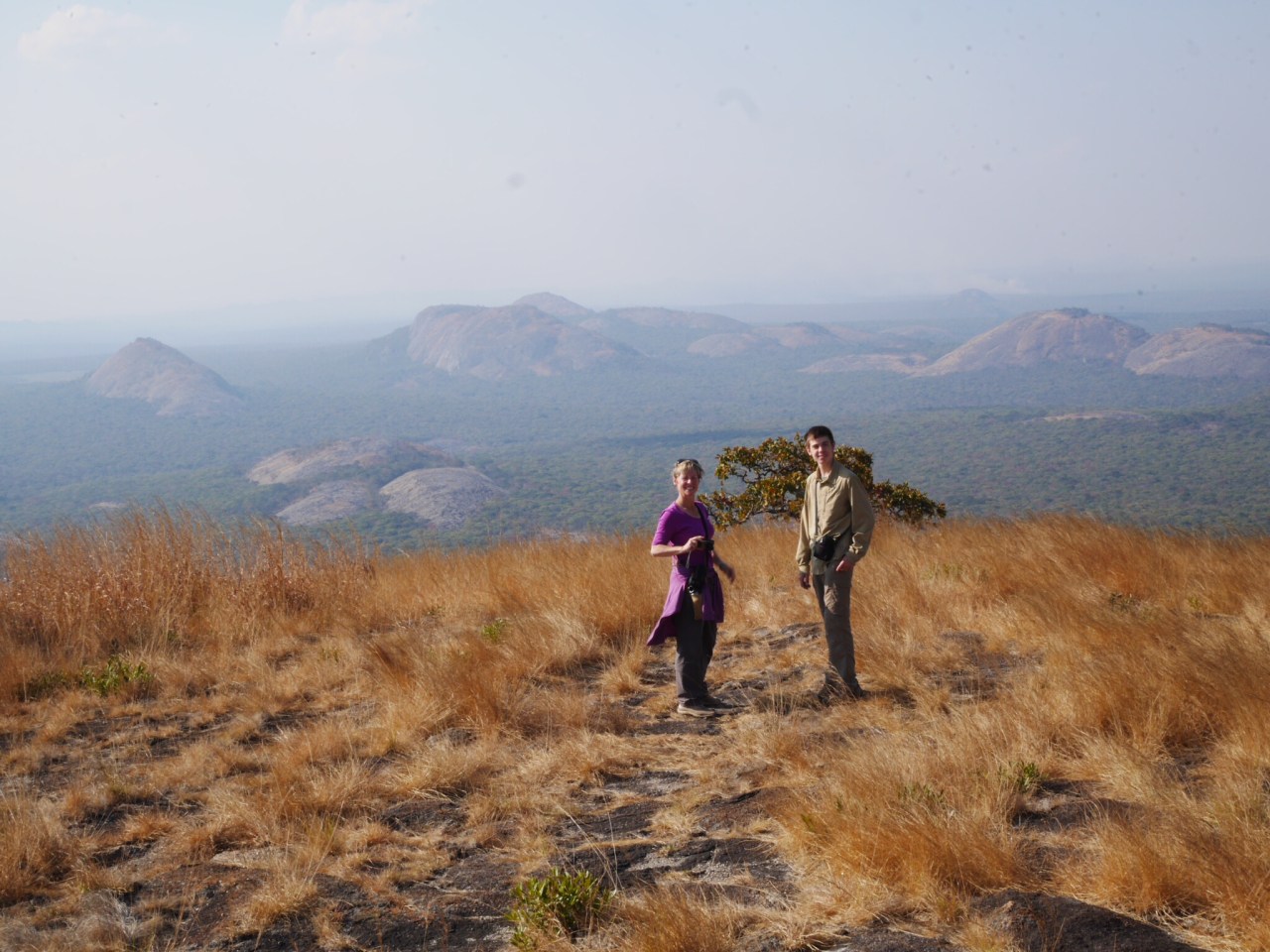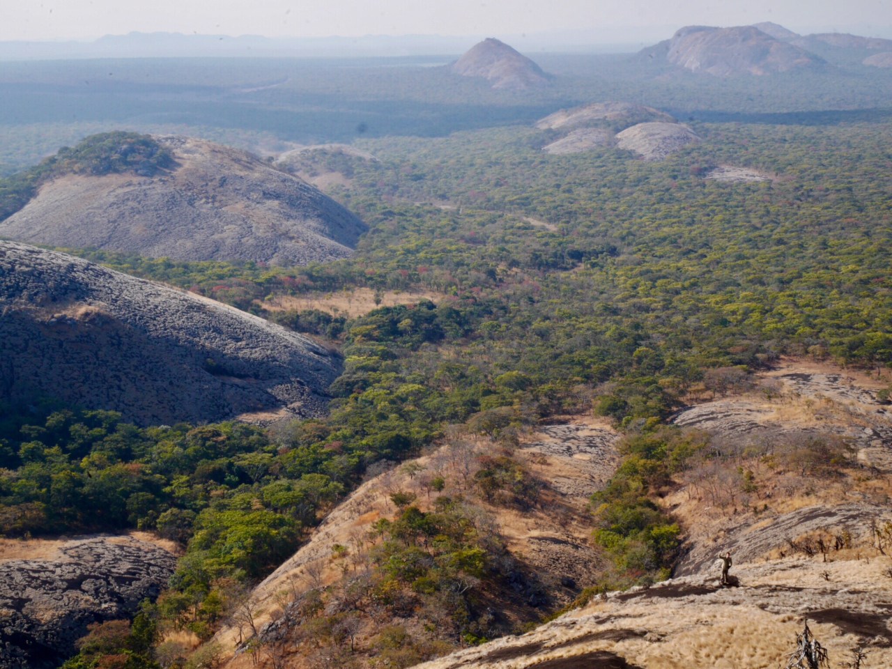 Up on the smooth round summit the view was immense. An ocean of forest in every direction with whalebacks rising out of it. Here and there a river cut a swathe through the trees and a dried lakebed filled with plants glowed green in the sunlight. The only sign of human life was a wisp of smoke in the far distance. What a spot.
